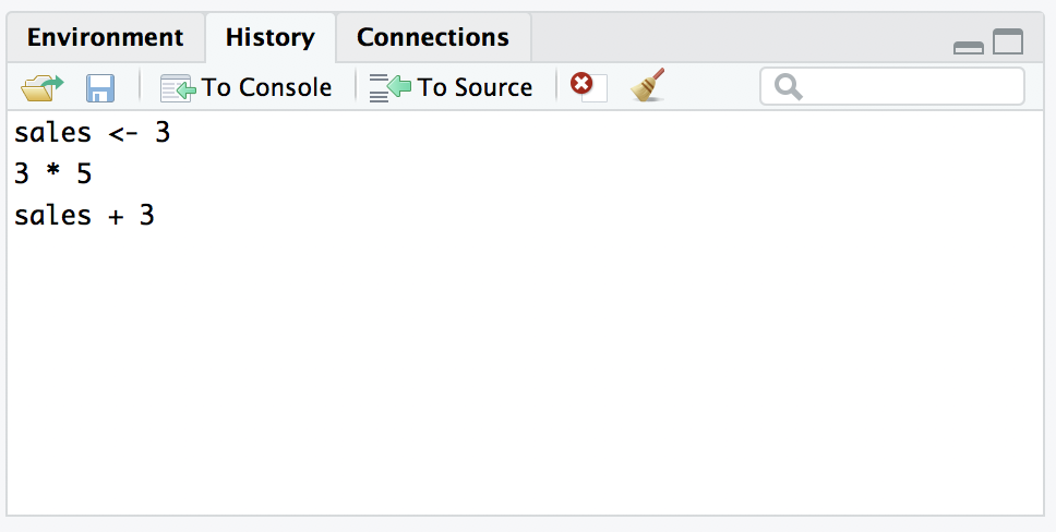 Click on that, and you’ ll see a list of all your recent commands displayed in that panel– double click on one of the commands, and it will be copied to the R console. You can achieve the same result by selecting the command you want with the mouse and then clicking the To Console button.